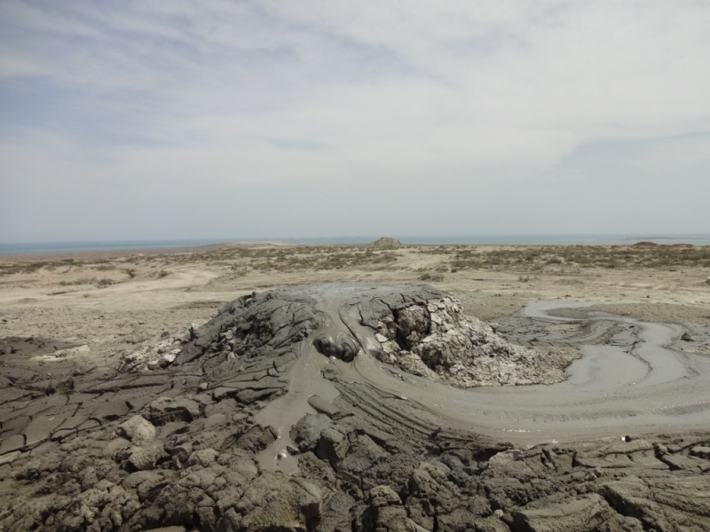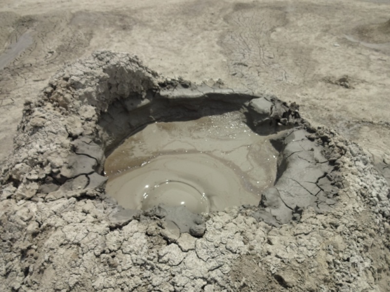 Грязевые вулканы оказались весьма непредсказуемы. Первый же плюнул в меня темной жижей. Мы немного побродили, пофотографировали и поехали дальше.
